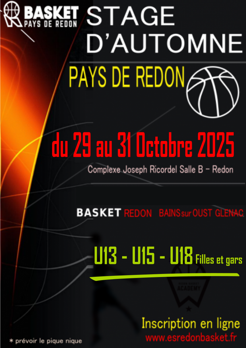 STAGE D'AUTOMNE - U13 U15 U18 - du mercredi 29 au vendredi 31 Octobre 2025 -